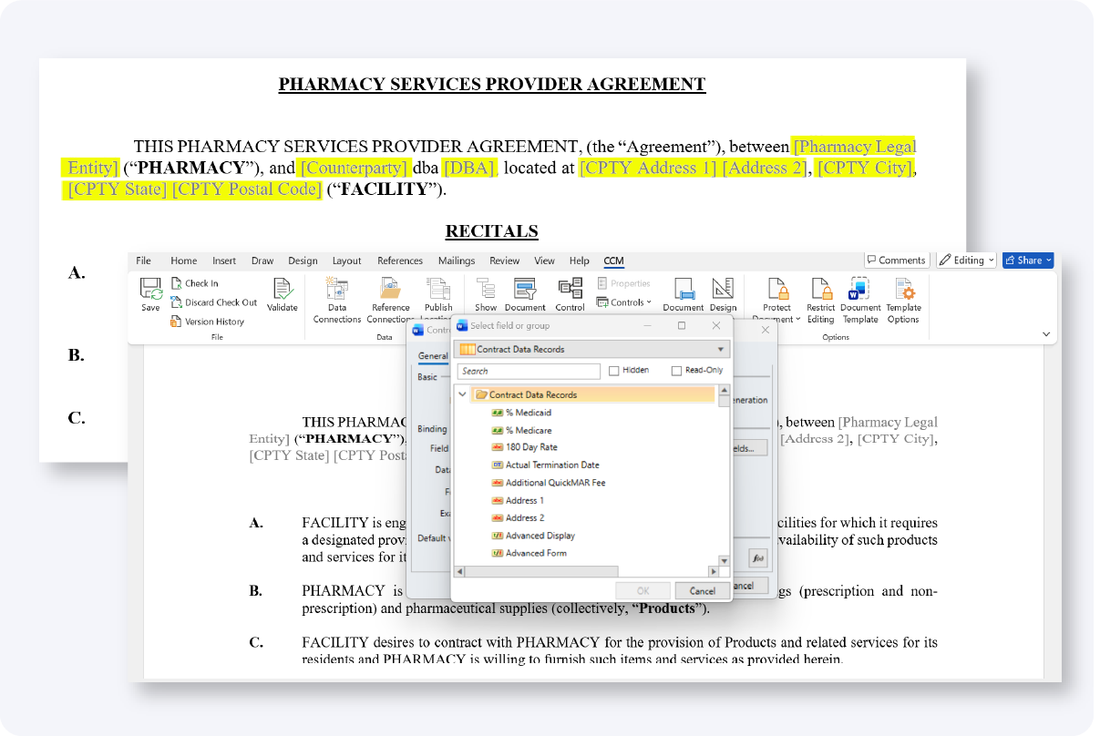 Built into the Contracts 365 platform through the Contract Creation Module (CCM), Document Assembly pulls metadata from contract records, counterparty records, and related documents to instantly produce accurate, standardized drafts based on your templates. It’s not just faster. It’s consistent, compliant, and built for scale.